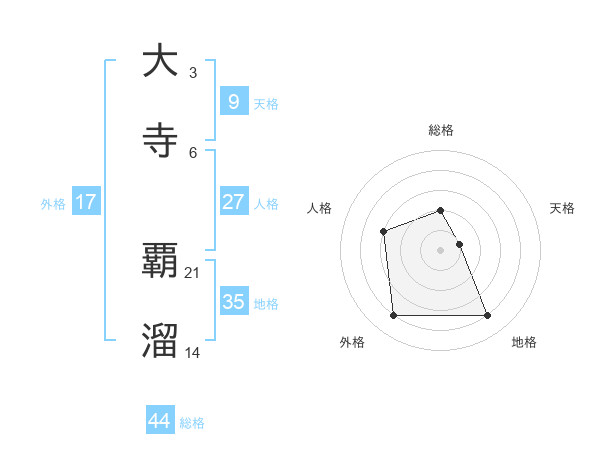 大寺 覇溜さんを姓名の画数から五運を鑑定