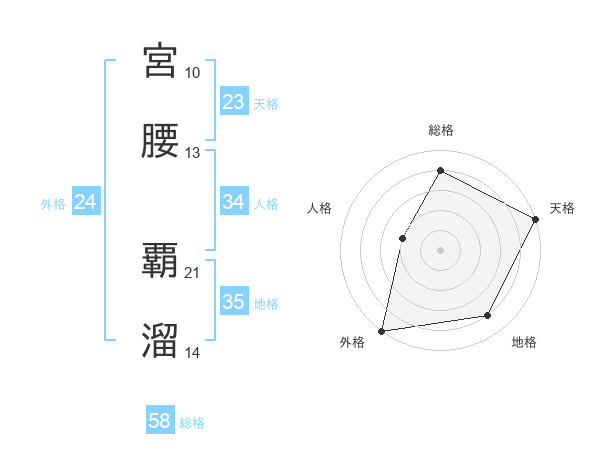 宮腰 覇溜さんの総格は58画の4点!