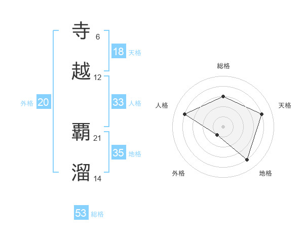 寺越 覇溜さんを姓名の画数から五運を鑑定