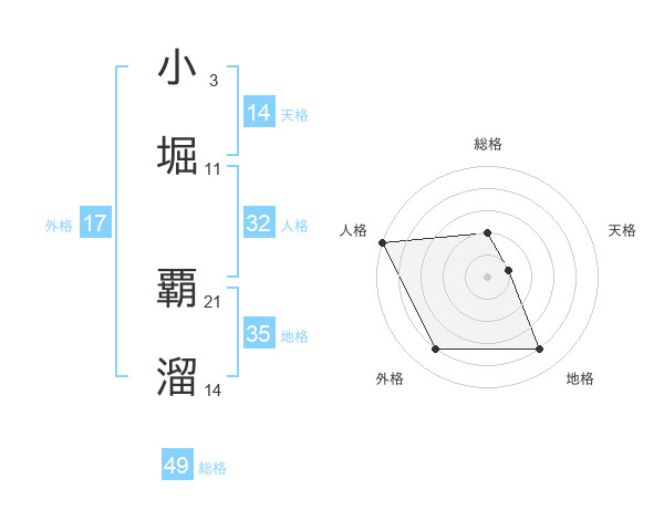 小堀 覇溜さんを姓名の画数から五運を鑑定