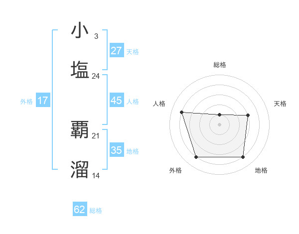 小塩 覇溜さんの外格は17画の4点!