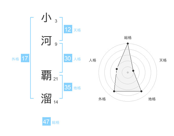 小河 覇溜さんの総格は47画の5点!