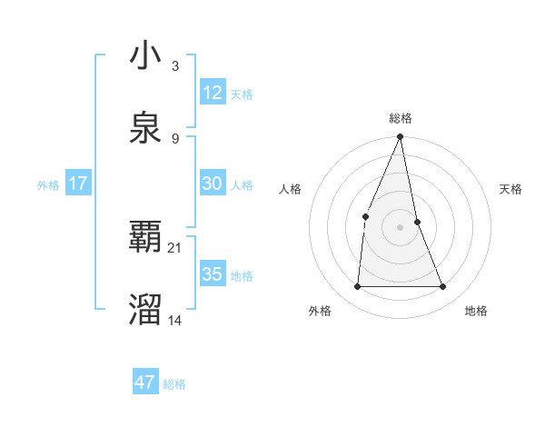 小泉 覇溜さんを姓名の画数から五運を鑑定