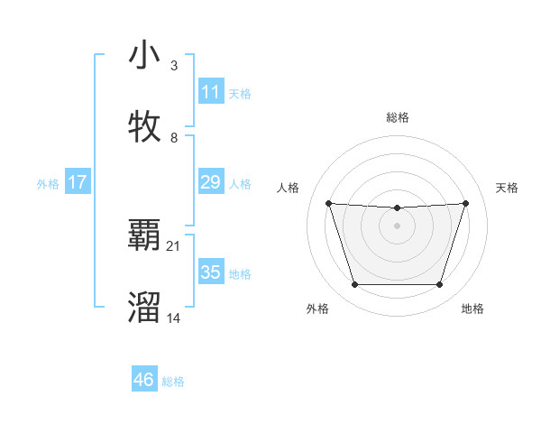 小牧 覇溜さんを姓名の画数から五運を鑑定