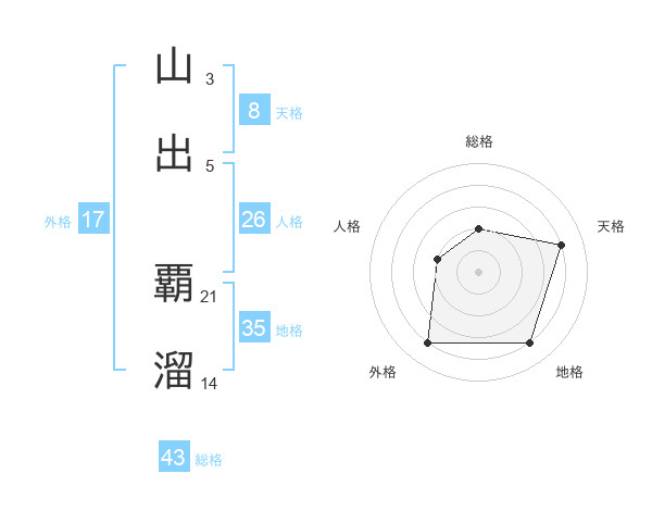 山出 覇溜さんを姓名の画数から五運を鑑定