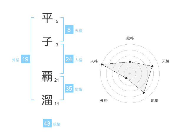 平子 覇溜さんを姓名の画数から五運を鑑定