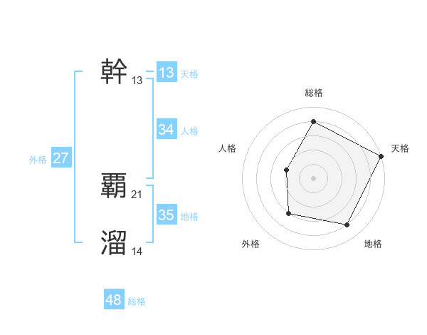 幹 覇溜さんの総格は48画の4点!