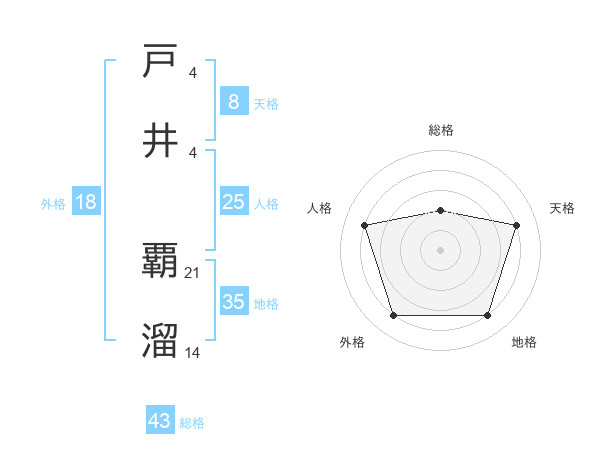 戸井 覇溜さんを姓名の画数から五運を鑑定