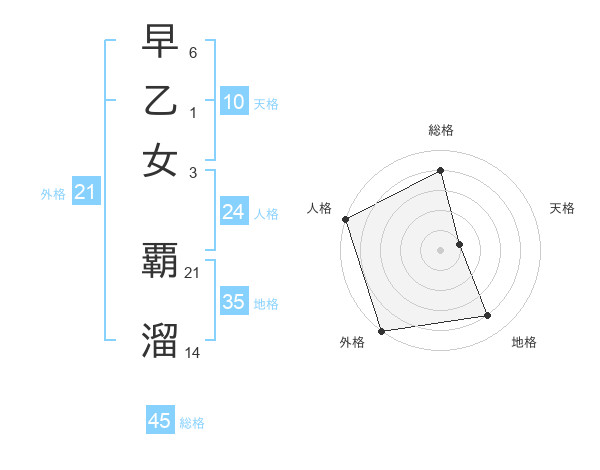 早乙女 覇溜さんを姓名の画数から五運を鑑定