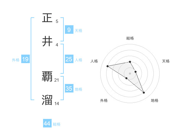正井 覇溜さんを姓名の画数から五運を鑑定