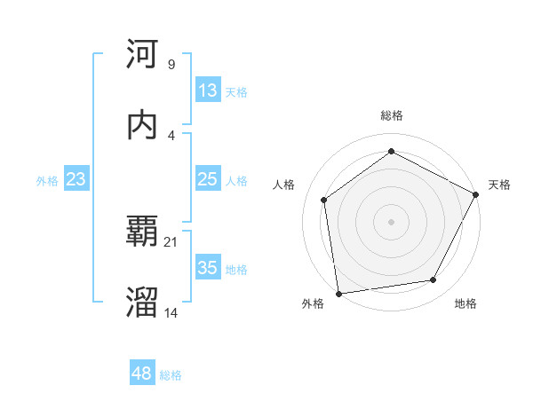 河内 覇溜さんを姓名の画数から五運を鑑定