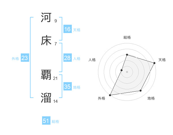 河床 覇溜さんを姓名の画数から五運を鑑定