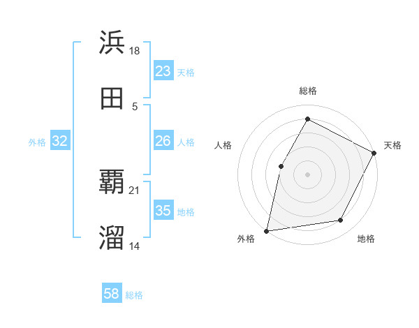 浜田 覇溜さんを姓名の画数から五運を鑑定