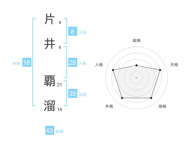 片井 覇溜さんを姓名の画数から五運を鑑定
