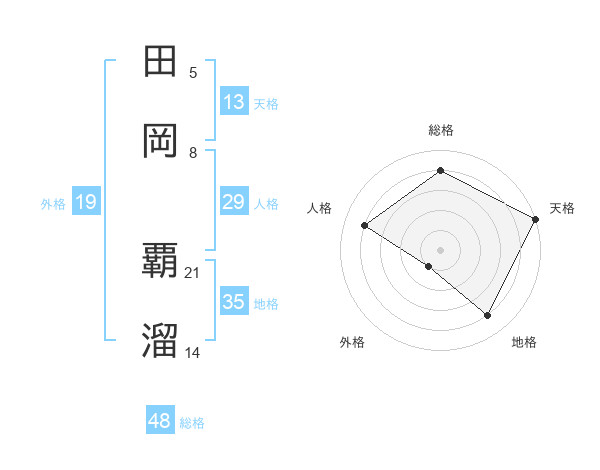 田岡 覇溜さんを姓名の画数から五運を鑑定