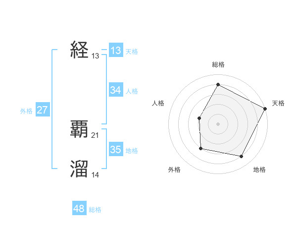 経 覇溜さんの総格は48画の4点!