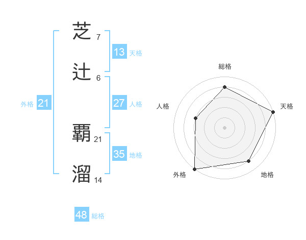 芝辻 覇溜さんを姓名の画数から五運を鑑定