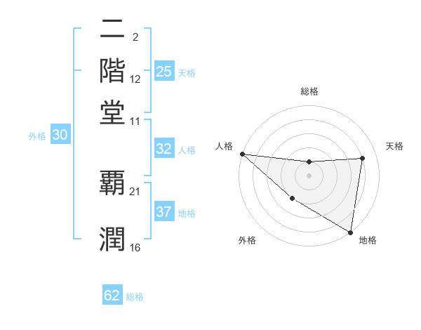 二階堂 覇潤さんを姓名の画数から五運を鑑定