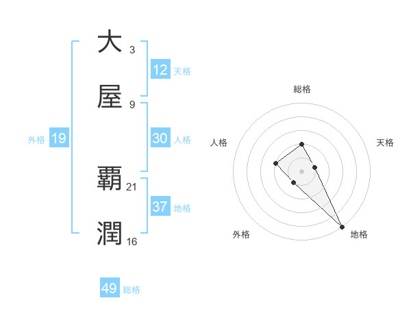 大屋 覇潤さんを姓名の画数から五運を鑑定
