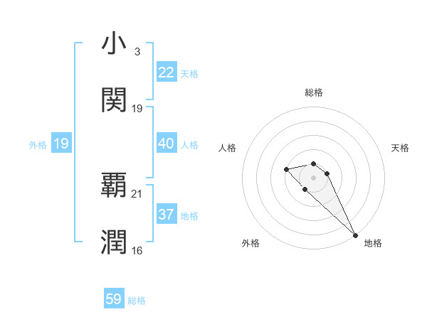小関 覇潤さんを姓名の画数から五運を鑑定