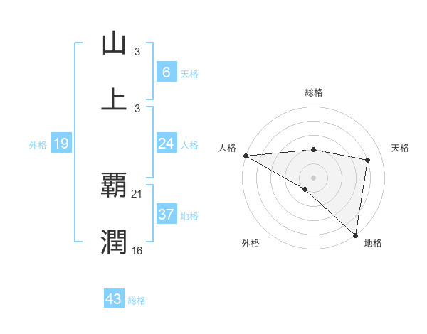 山上 覇潤さんを姓名の画数から五運を鑑定