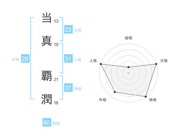当真 覇潤さんを姓名の画数から五運を鑑定