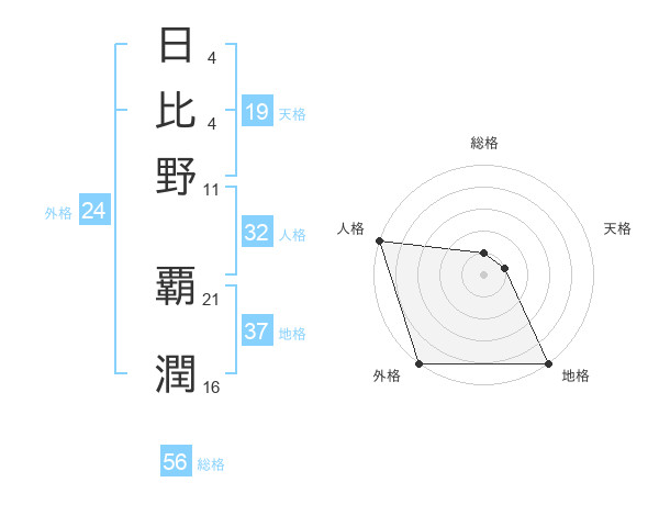 日比野 覇潤さんを姓名の画数から五運を鑑定