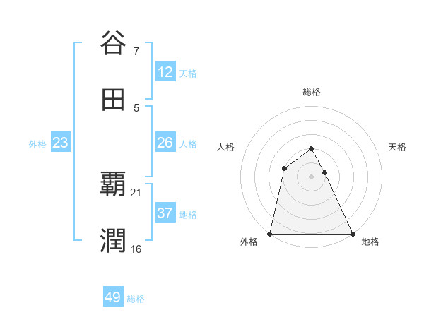 谷田 覇潤さんを姓名の画数から五運を鑑定