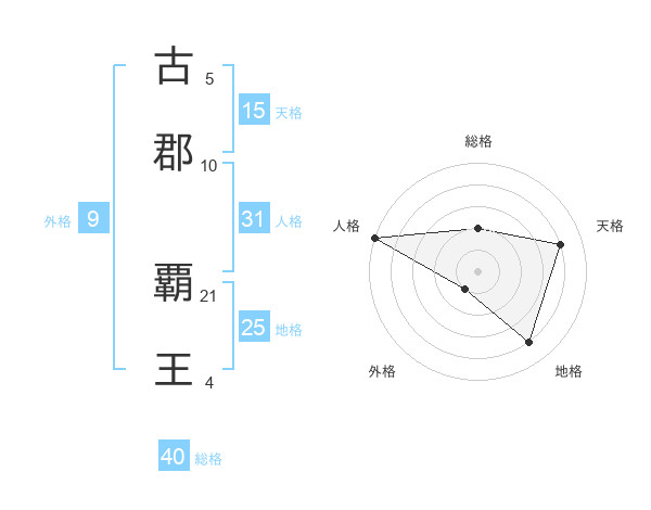 古郡 覇王さんを姓名の画数から五運を鑑定