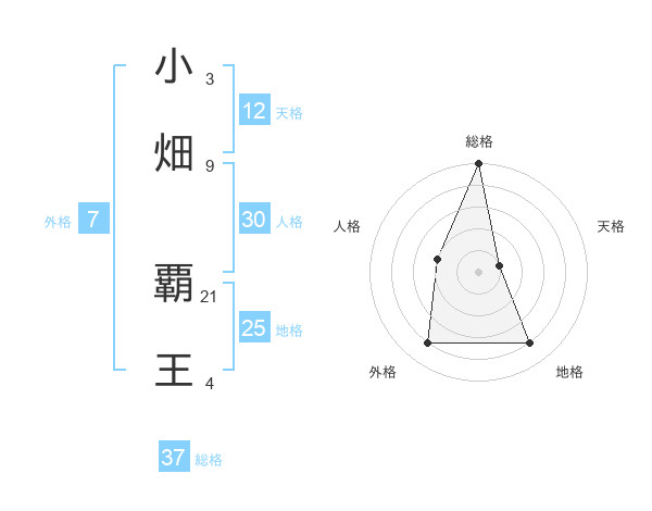 小畑 覇王さんを姓名の画数から五運を鑑定