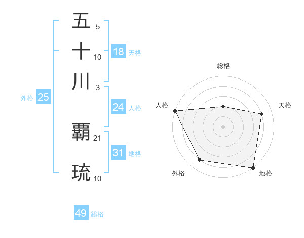 五十川 覇琉さんを姓名の画数から五運を鑑定