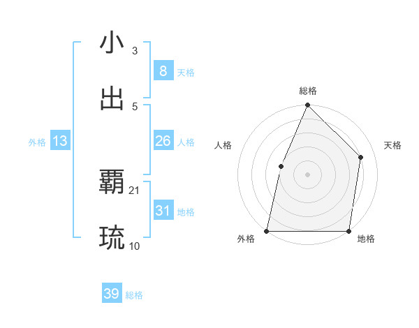 小出 覇琉さんの総格は39画の5点!