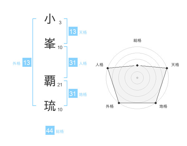 小峯 覇琉さんを姓名の画数から五運を鑑定