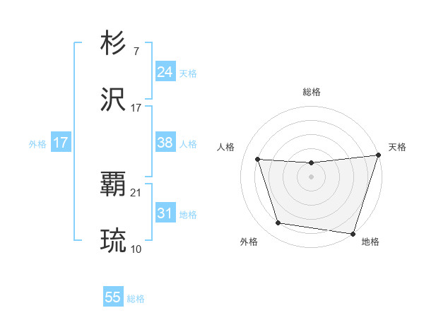 杉沢 覇琉さんを姓名の画数から五運を鑑定