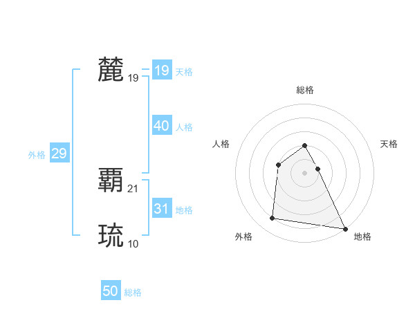 麓 覇琉さんの総格は50画の2点!