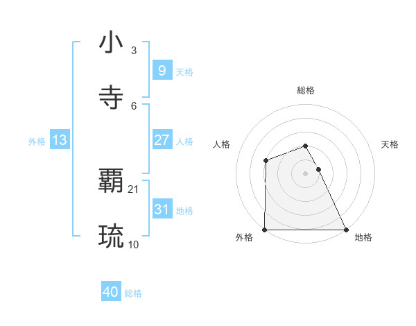 小寺 覇琉さんの外格は13画の5点!