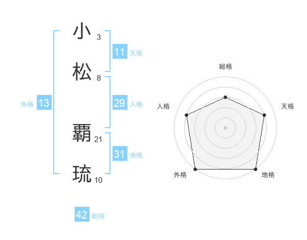 小松 覇琉さんを姓名の画数から五運を鑑定