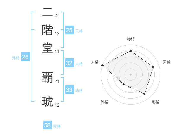 二階堂 覇琥さんを姓名の画数から五運を鑑定