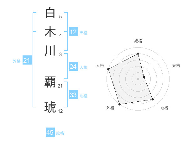 白木川 覇琥さんを姓名の画数から五運を鑑定