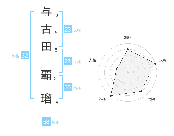 与古田 覇瑠さんを姓名の画数から五運を鑑定