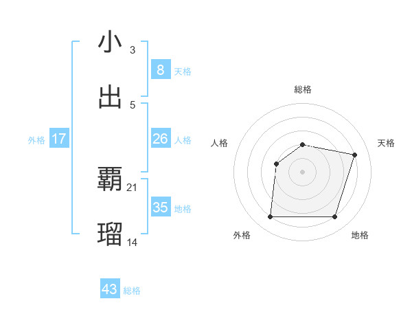 小出 覇瑠さんの外格は17画の4点!