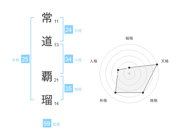 常道 覇瑠さんの天格は24画の5点!