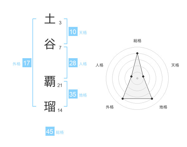 土谷 覇瑠さんの総格は45画の4点!