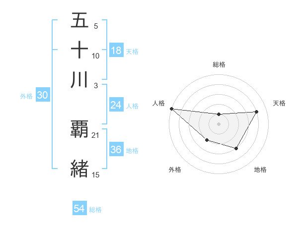 五十川 覇緒さんを姓名の画数から五運を鑑定