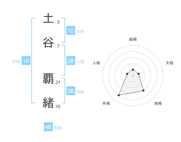 土谷 覇緒さんを姓名の画数から五運を鑑定