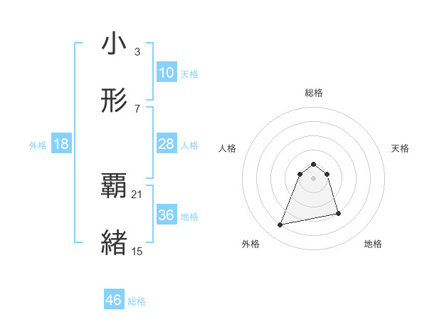 小形 覇緒さんの総格は46画の1点!