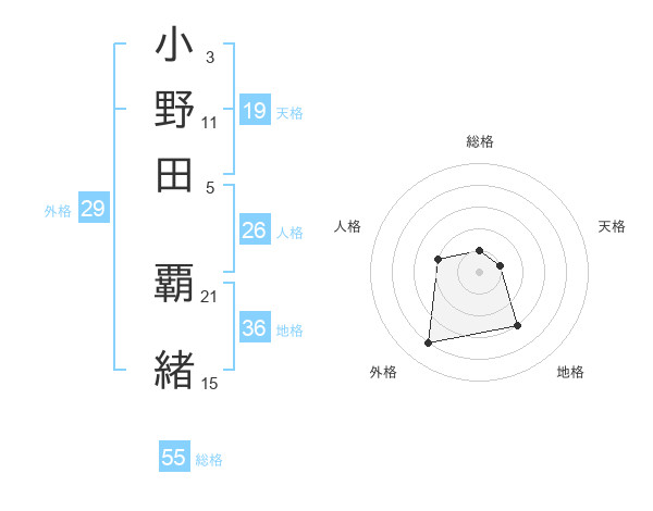 小野田 覇緒さんを姓名の画数から五運を鑑定