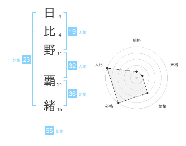 日比野 覇緒さんを姓名の画数から五運を鑑定
