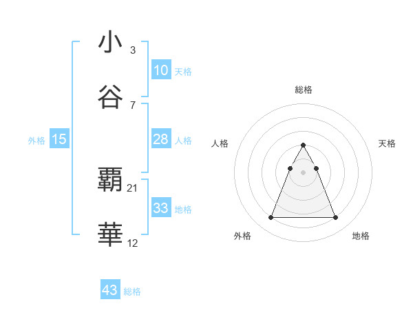 小谷 覇華さんを姓名の画数から五運を鑑定