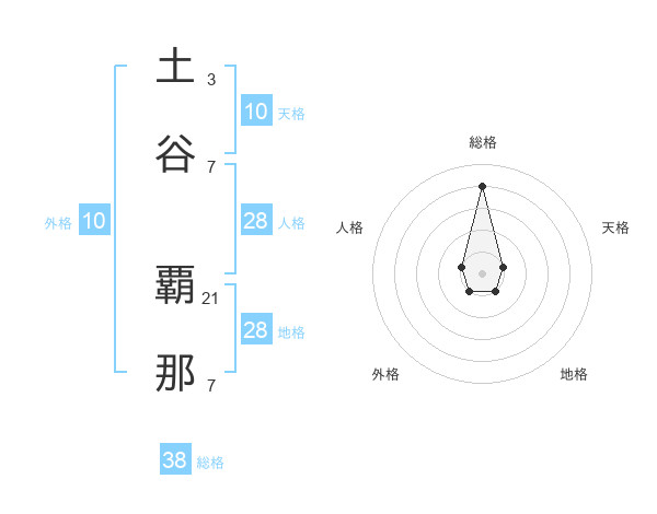 土谷 覇那さんを姓名の画数から五運を鑑定